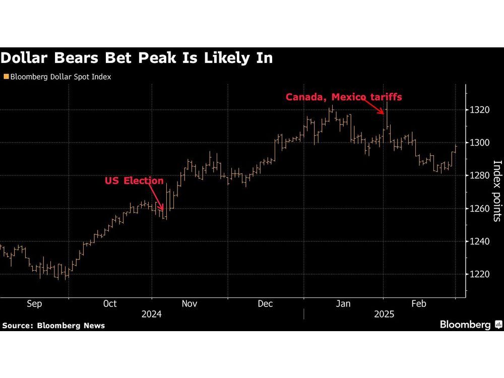 (Bloomberg) — President Donald Trump’s tariff threats once again lifted the dollar last week, but a growing group of investors is betting against the greenback amid signs the US economy is cooling and on concern a trade war will weaken it further.