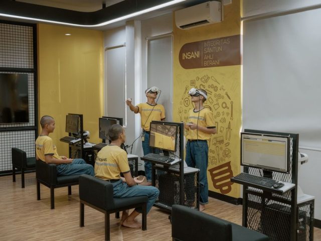 Siswa belajar pemeliharaan mesin berat melalui realitas virtual di United Tractors di Jakarta, Indonesia, pada hari Kamis, 6 Maret 2025.Siswa belajar pemeliharaan mesin berat melalui realitas virtual di United Tractors di Jakarta, Indonesia, pada hari Kamis, 6 Maret 2025. Foto oleh Muhammad Fadli /Fotografer: Muhammad Fadli /Blo