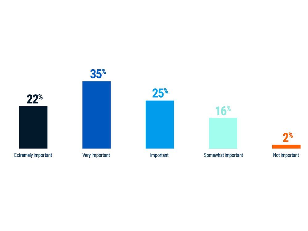 Selain itu, 57% perusahaan yang disurvei percaya teknologi juga sangat atau sangat penting untuk keunggulan kompetitif dalam strategi kepatuhan perdagangan (lihat Gambar 1). Pandangan ini bahkan lebih jelas dalam bisnis pertumbuhan versus perusahaan non-pertumbuhan: 72%, atau hampir tiga perempat, dari perusahaan yang tumbuh cepat percaya teknologi adalah pembeda kompetitif yang berharga, dibandingkan dengan hanya 41% dari bisnis yang memprediksi menyusut, terbatas, atau tidak ada pertumbuhan.