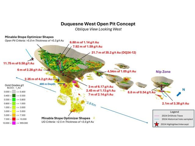 Dalam berita lain, Emperor Metals Inc. telah melaporkan analisis saringan logam dari beberapa lubang bor di properti Gold Duquesne West di bawah opsi dari 50% Globex yang dimiliki Duparquet Asset T au lebih dari 2,5 m dengan uji kebakaran standar. Menurutkan kembali menggunakan metode uji kebakaran logam yang disaring, yang sangat berguna ketika menguji sampel dengan emas kasar, dilaporkan telah mengembalikan 301,1 g/t Au lebih dari 2,5 m. Tes pada inti historis juga mengembalikan nilai -nilai emas yang signifikan seperti yang dilaporkan dalam siaran pers Kaisar saat ini. Pemegang saham dapat mengakses siaran pers Kaisar dengan pergi ke situs web Kaisar di www.emperormetals.com.